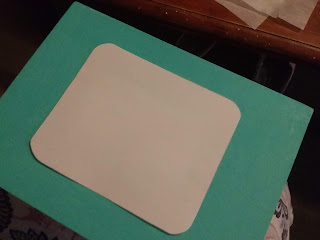 Now, it was time to work on my stand for the birdhouse. I hot glued the two small coasters on either end of my pine length. To find the center where the pine length had to be glued, I marked each coaster from corner to corner to find the center. As shown below. Then marked out a 30mm by 30mm square from the center point....(15mm on each side from center point).